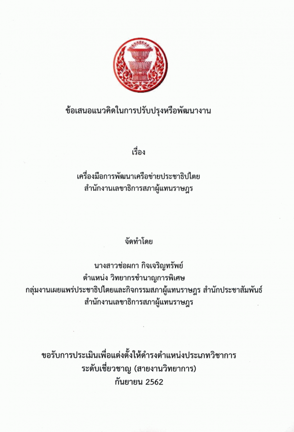เครื่องมือการพัฒนาเครือข่ายประชาธิปไตย สำนักงานเลขาธิการสภาผู้แทนราษฎร / ช่อผกา กิจเจริญทรัพย์.