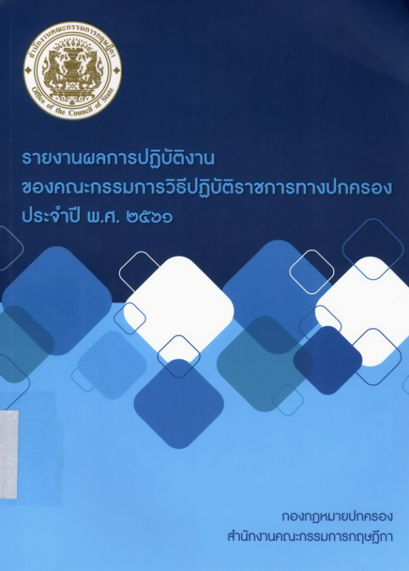 รายงานผลการปฏิบัติงานของคณะกรรมการวิธีปฏิบัติราชการทางปกครอง ประจำปี พ.ศ. 2561 / สำนักงานคณะกรรมการกฤษฎีกา.
