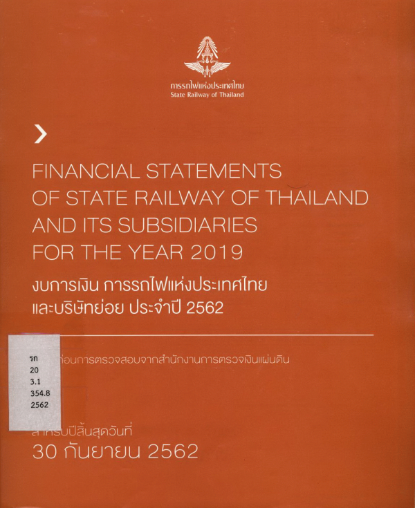 งบการเงิน การรถไฟแห่งประเทศไทยและบริษัทย่อย ประจำปี 2562 ข้อมูลก่อนการตรวจสอบจากสำนักงานการตรวจเงินแผ่นดิน สำหรับปีสิ้นสุดวันที่ 30 กันยายน 2562 : Financial statements of state railway of Thailand and its subsidiaries for the year 2019 / การรถไฟแห่งประเทศไทย.