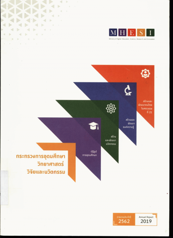 รายงานประจำปี 2562 กระทรวงการอุดมศึกษา วิทยาศาสตร์ วิจัยและนวัตกรรม / สำนักงานปลัดกระทรวงการอุดมศึกษา วิทยาศาสตร์ วิจัยและนวัตกรรม.