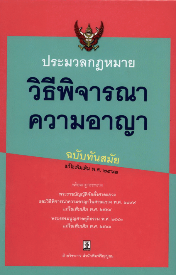 ประมวลกฎหมายวิธีพิจารณาความอาญา ฉบับทันสมัย แก้ไขเพิ่มเติม พ.ศ. 2562 / รวบรวมโดย ฝ่ายวิชาการ สำนักพิมพ์วิญญูชน.