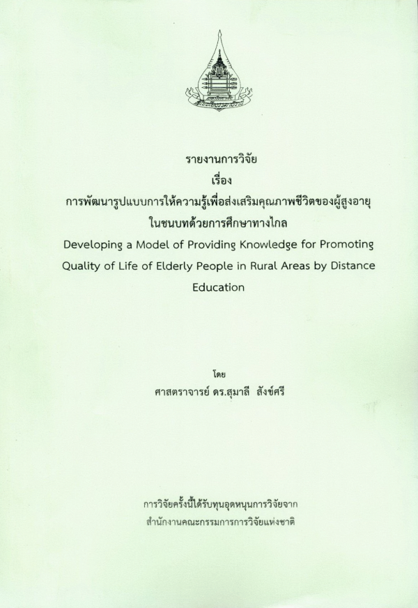 การพัฒนารูปแบบการให้ความรู้เพื่อส่งเสริมคุณภาพชีวิตของผู้สูงอายุในชนบทด้วยการศึกษาทางไกล / สุมาลี สังข์ศรี.