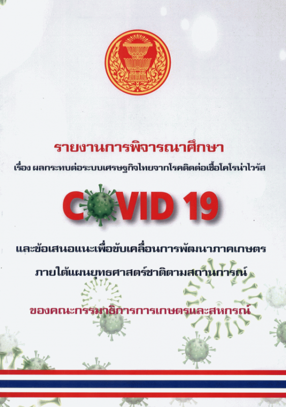 รายงานการพิจารณาศึกษา เรื่อง ผลกระทบต่อระบบเศรษฐกิจไทยจากโรคติดต่อเชื้อโรคโคโรนาไวรัส (COVID-19) และข้อเสนอแนะเพื่อขับเคลื่อนการพัฒนาภาคเกษตรภายใต้แผนยุทธศาสตร์ชาติตามสถานการณ์ ของ คณะกรรมาธิการการเกษตรและสหกรณ์ วุฒิสภา / สำนักกรรมาธิการ 1 สำนักงานเลขาธิการวุฒิสภา.