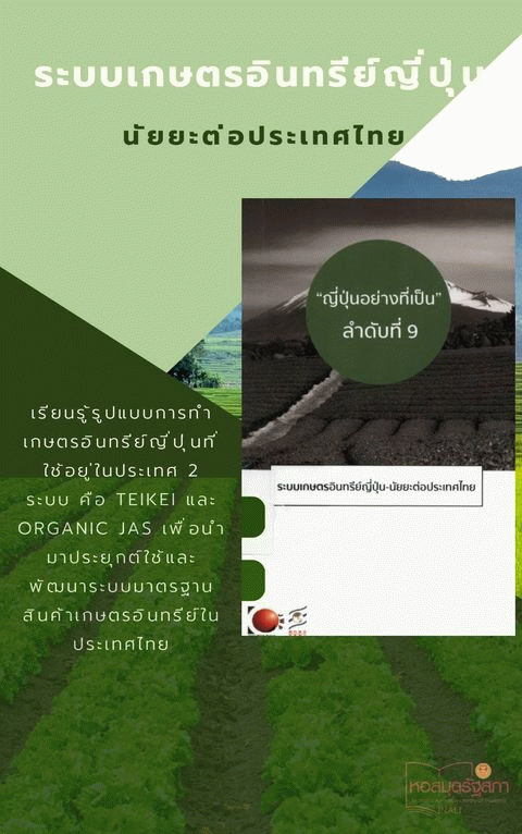 - "ญี่ปุ่นอย่างที่เป็น" ลำดับที่ 9 ระบบเกษตรอินทรีย์ญี่ปุ่น-นัยยะต่อประเทศไทย [Cover title]
