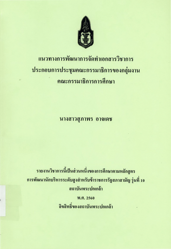 แนวทางการพัฒนาการจัดทำเอกสารวิชาการประกอบการประชุมคณะกรรมาธิการของกลุ่มงานคณะกรรมาธิการการศึกษา / สุภาพร อาจเดช ; สถาบันพระปกเกล้า.