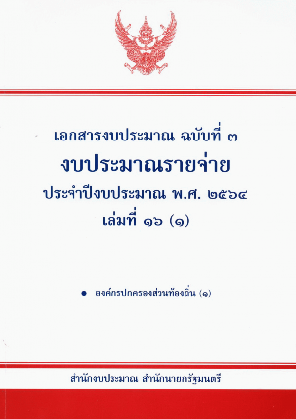 เอกสารงบประมาณ ฉบับที่ 3 งบประมาณรายจ่าย ประจำปีงบประมาณ พ.ศ. 2564 เล่มที่ 16 (1) องค์กรปกครองส่วนท้องถิ่น (1) / สำนักงบประมาณ.