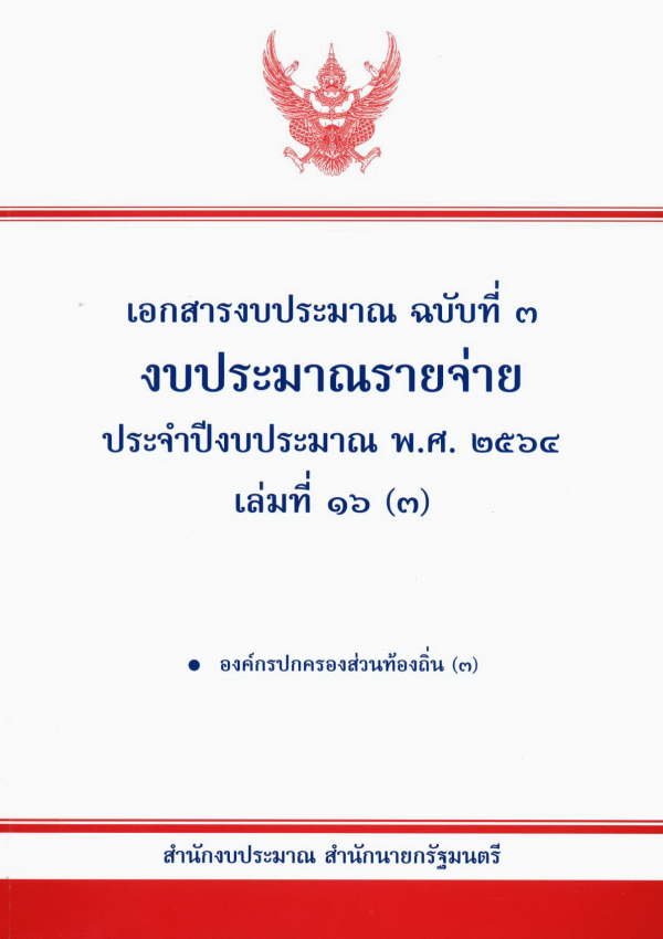 เอกสารงบประมาณ ฉบับที่ 3 งบประมาณรายจ่าย ประจำปีงบประมาณ พ.ศ. 2564 เล่มที่ 16 (3) องค์กรปกครองส่วนท้องถิ่น (3) / สำนักงบประมาณ.