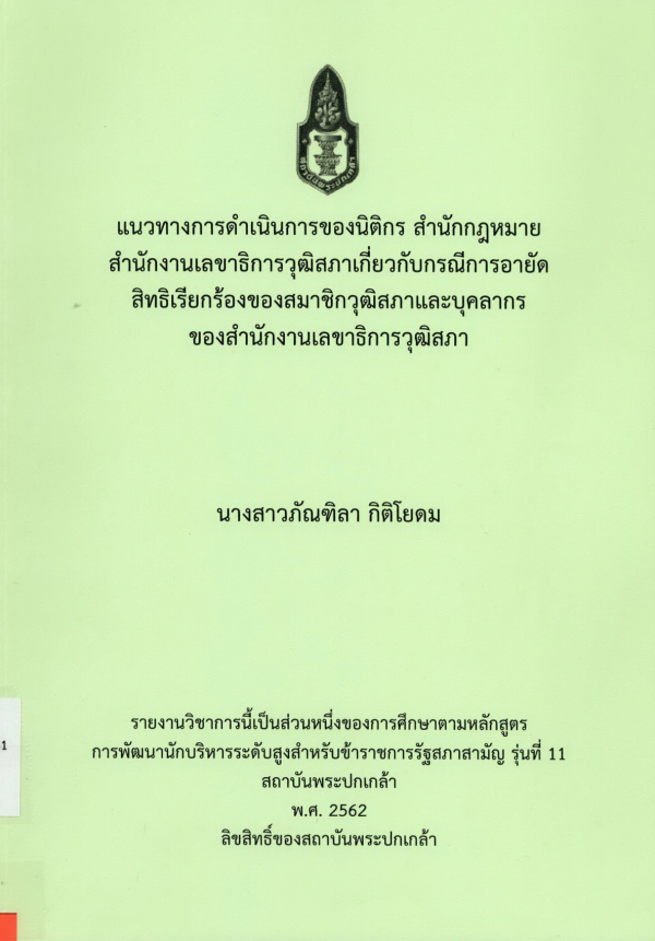 แนวทางการดำเนินการของนิติกร สำนักกฎหมาย สำนักงานเลขาธิการวุฒิสภาเกี่ยวกับกรณีการอายัดสิทธิเรียกร้องของสมาชิกวุฒิสภาและบุคลากรของสำนักงานเลขาธิการวุฒิสภา / ภัณฑิลา กิติโยดม ; สถาบันพระปกเกล้า.