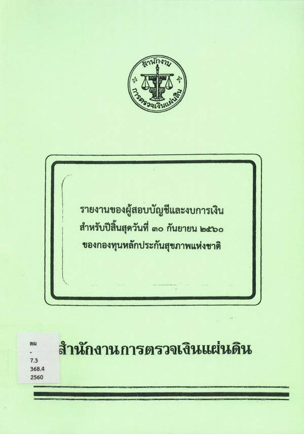 รายงานของผู้สอบบัญชีและงบการเงินสำหรับปีสิ้นสุดวันที่ 30 กันยายน 2560 ของกองทุนหลักประกันสุขภาพแห่งชาติ / สำนักงานการตรวจเงินแผ่นดิน.