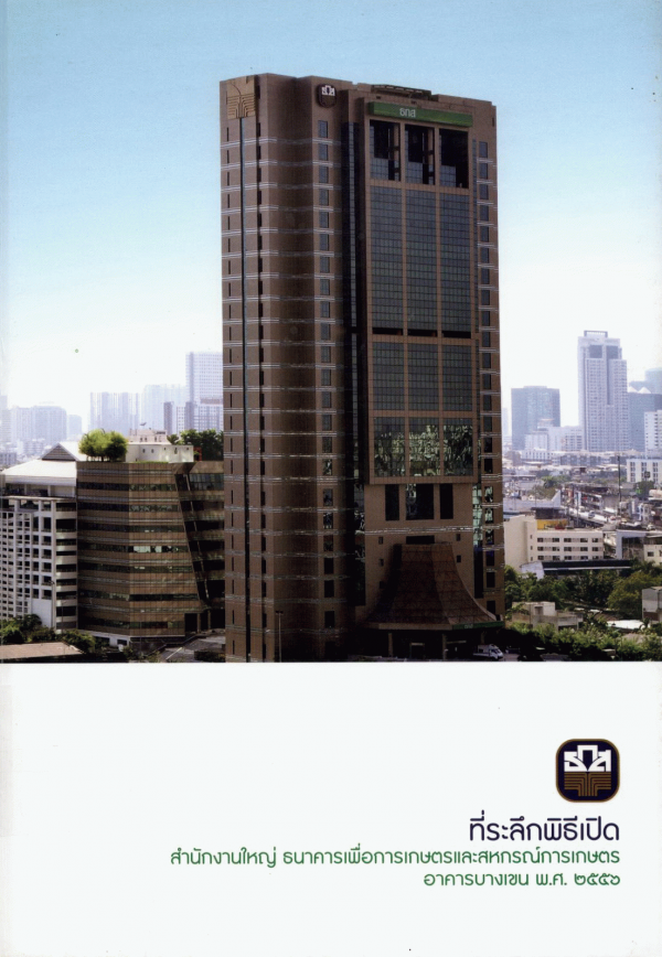 ที่ระลึกพิธีเปิด สำนักงานใหญ่ ธนาคารเพื่อการเกษตรและสหกรณ์การเกษตร อาคารบางเขน พ.ศ. 2556 / วันทนา กอวัฒนสกุล ... [และคนอื่น ๆ].