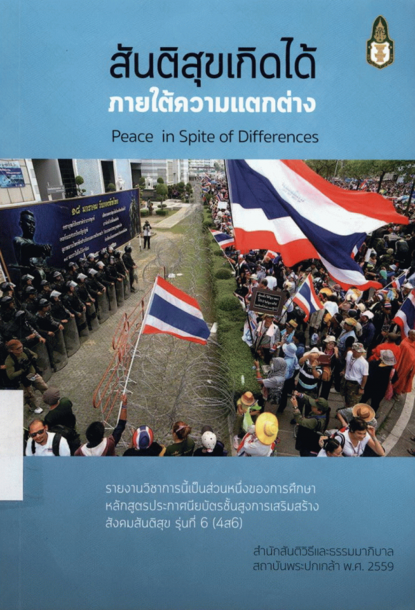 สันติสุขเกิดได้ภายใต้ความแตกต่าง = Peace in Spite of Differences / นักศึกษาหลักสูตรประกาศนียบัตรชั้นสูงการเสริมสร้างสังคมสันติสุข รุ่นที่ 6 ; สถาบันพระปกเกล้า.