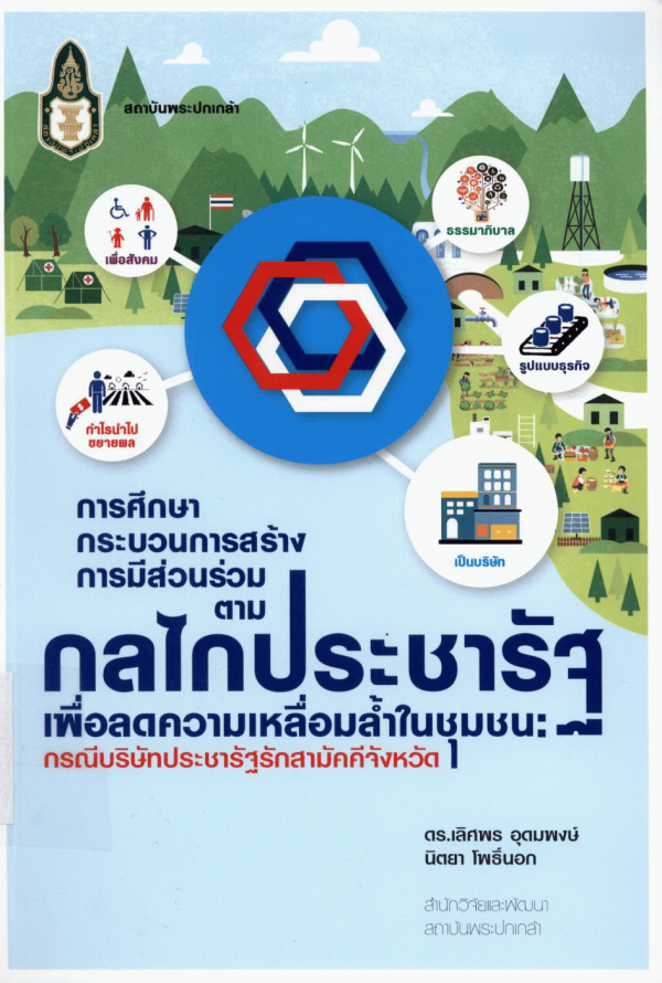 การศึกษากระบวนการสร้างการมีส่วนร่วมตามกลไกประชารัฐเพื่อลดความเหลื่อมล้ำในชุมชน : กรณีบริษัทประชารัฐรักสามัคคีจังหวัด / เลิศพร อุดมพงษ์ และนิตยา โพธิ์นอก.