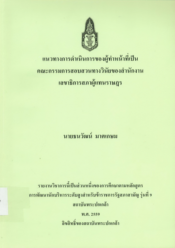 แนวทางการดำเนินการของผู้ทำหน้าที่เป็นคณะกรรมการสอบสวนทางวินัยของสำนักงานเลขาธิการสภาผู้แทนราษฎร / ธนวัฒน์ มาศเกษม.