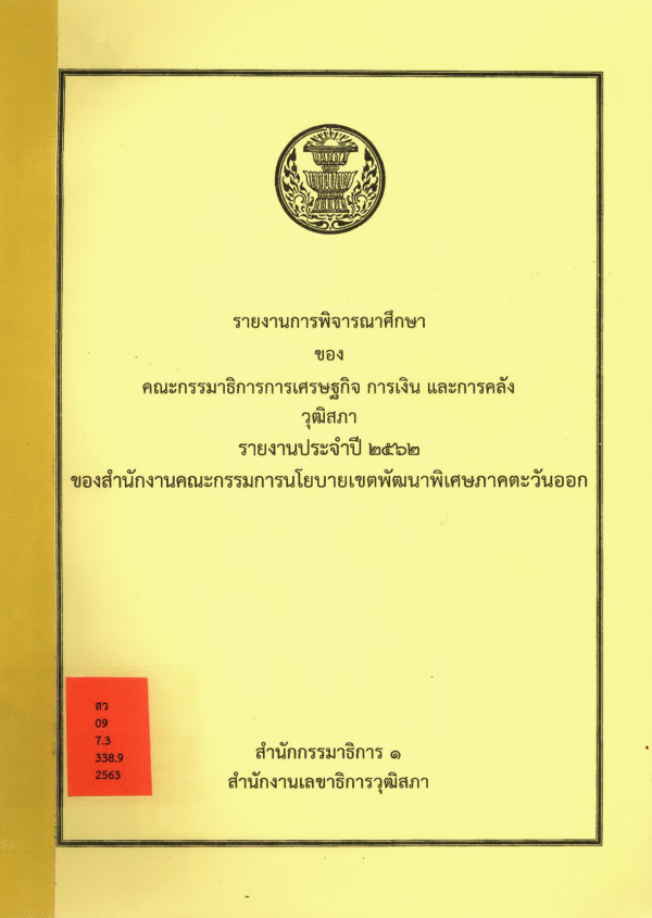 รายงานการพิจารณาศึกษา ของคณะกรรมาธิการการเศรษฐกิจ การเงิน และการคลัง วุฒิสภา รายงานประจำปี 2562 ของสำนักงานคณะกรรมการนโยบายเขตพัฒนาพิเศษภาคตะวันออก / สำนักกรรมาธิการ 1 สำนักงานเลขาธิการวุฒิสภา.