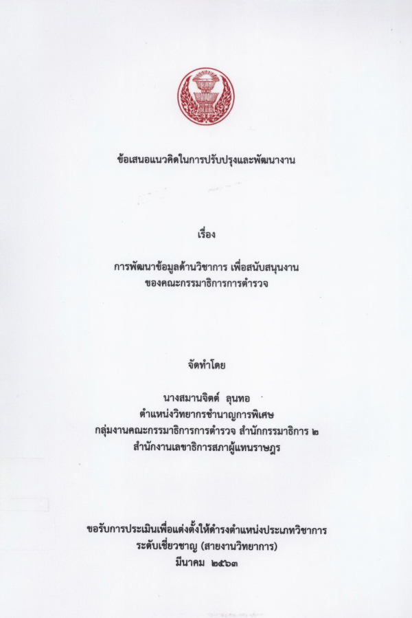 การพัฒนาข้อมูลด้านวิชาการ เพื่อสนับสนุนงานของคณะกรรมาธิการการตำรวจ / สมานจิตต์ ลุนทอ