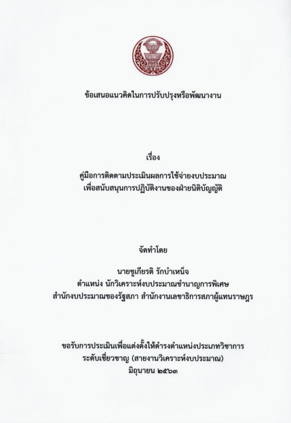 คู่มือการติดตามประเมินผลการใช้จ่ายงบประมาณเพื่อสนับสนุนการปฏิบัติงานของฝ่ายนิติบัญญัติ / ชูเกียรติ รักบำเหน็จ.