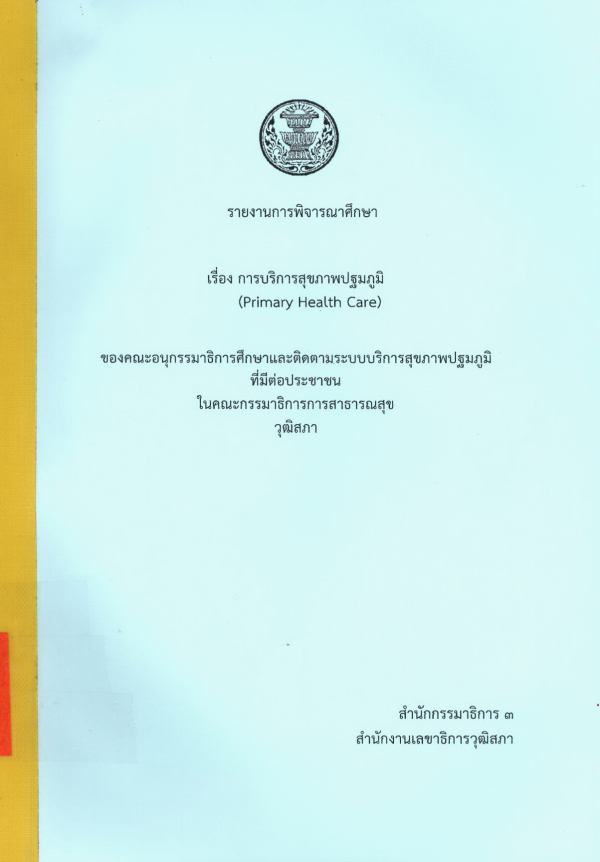 รายงานการพิจารณาศึกษา เรื่อง การบริการสุขภาพปฐมภูมิ (Primary Health Care) ของ คณะอนุกรรมาธิการศึกษาและติดตามระบบบริการสุขภาพปฐมภูมิที่มีต่อประชาชน ในคณะกรรมาธิการการสาธารณสุข วุฒิสภา / สำนักกรรมาธิการ 3 สำนักงานเลขาธิการวุฒิสภา.
