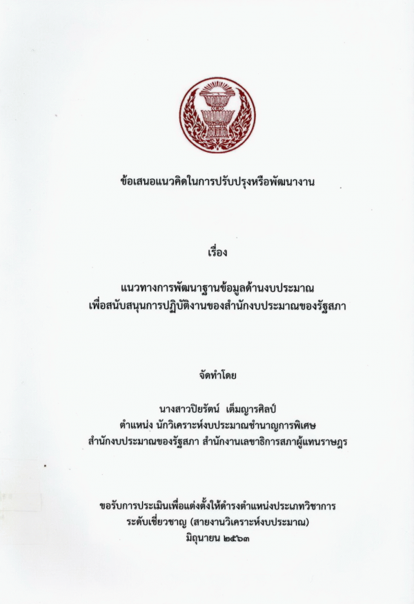 แนวทางการพัฒนาฐานข้อมูลด้านงบประมาณเพื่อสนับสนุนการปฏิบัติงานของสำนักงบประมาณของรัฐสภา / ปิยรัตน์ เต็มญารศิลป์.