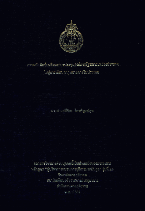 การผลักดันข้อมติของการประชุมองค์การรัฐสภาระหว่างประเทศไปสู่การพัฒนากฎหมายภายในประเทศ / สตีจิตร ไตรพิบูลย์สุข.