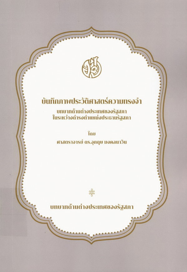 บันทึกภาพประวัติศาสตร์ความทรงจำบทบาทด้านต่างประเทศของรัฐสภาในระหว่างดำรงตำแหน่งประธานรัฐสภา / อุกฤษ มงคลนาวิน.