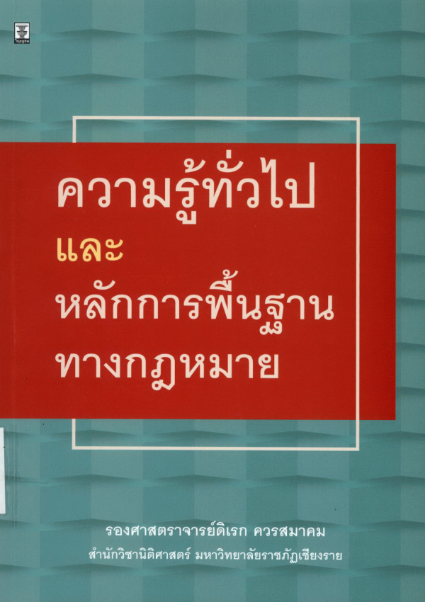 ความรู้ทั่วไปและหลักการพื้นฐานทางกฎหมาย / ดิเรก ควรสมาคม.
