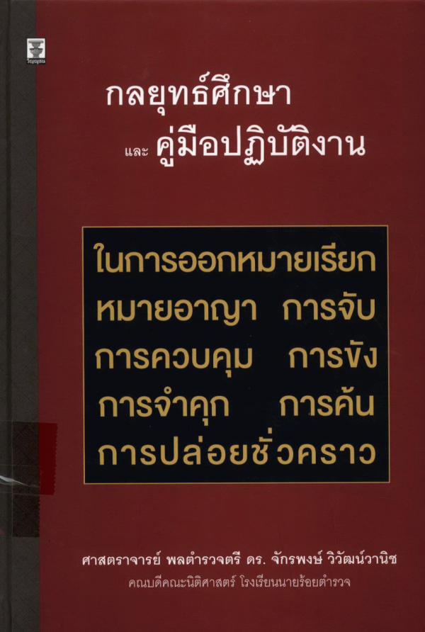 กลยุทธ์ศึกษาและคู่มือปฏิบัติงานในการออกหมายเรียก หมายอาญา การจับ การควบคุม การขัง การจำคุก การค้น การปล่อยชั่วคราว / จักรพงษ์ วิวัฒน์วานิช.