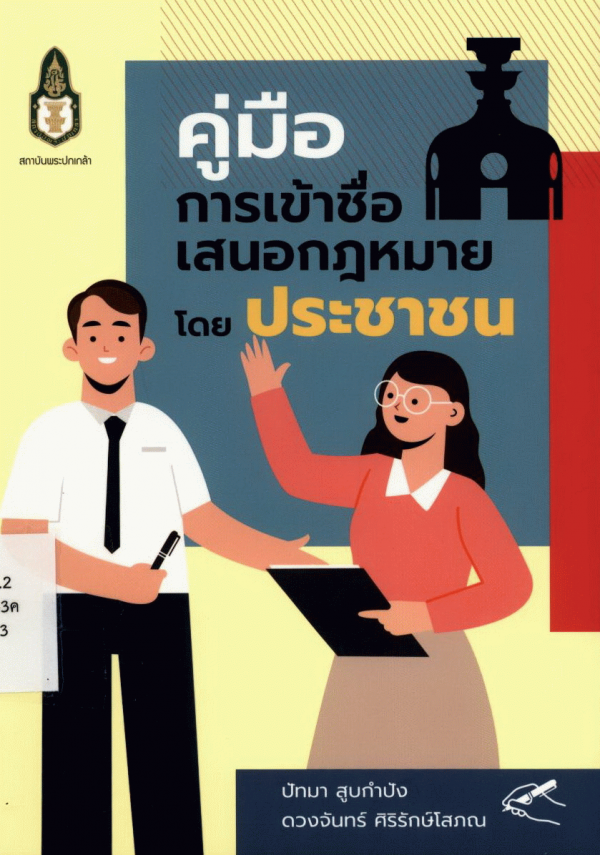 คู่มือการเข้าชื่อเสนอกฎหมายโดยประชาชน / ปัทมา สูบกำปัง และดวงจันทร์ ศิริรักษ์โสภณ.
