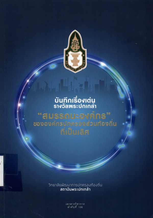 บันทึกเรื่องเด่นรางวัลพระปกเกล้า : "สมรรถนะองค์กร" ขององค์กรปกครองส่วนท้องถิ่นที่เป็นเลิศ / สถาบันพระปกเกล้า ; บรรณาธิการ อรทัย ก๊กผล และ วิลาวัณย์ หงษ์นคร.