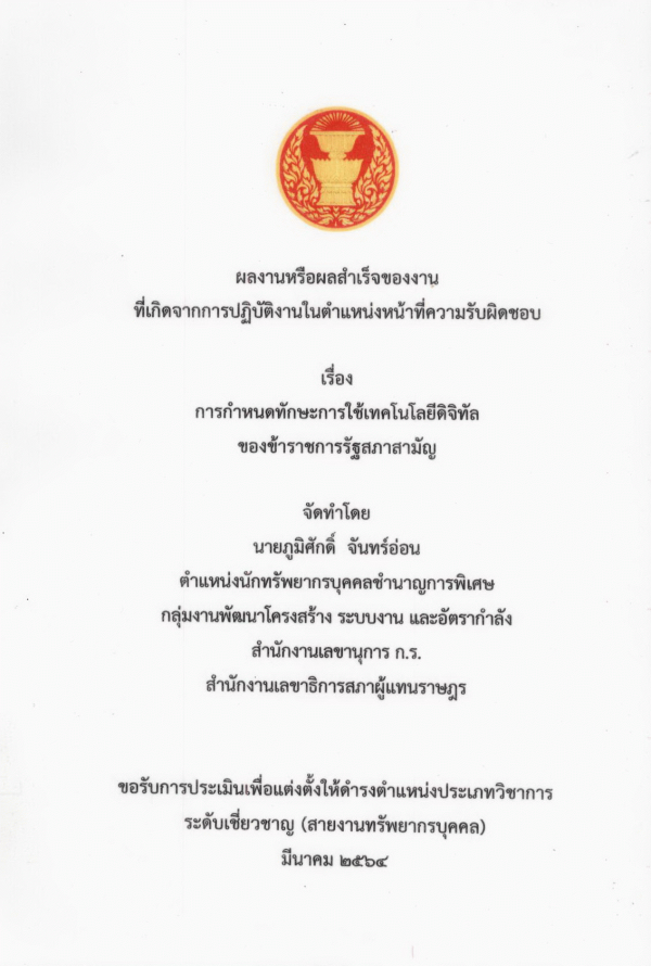 การกำหนดทักษะการใช้เทคโนโลยีดิจิทัลของข้าราชการรัฐสภาสามัญ / ภูมิศักดิ์ จันทร์อ่อน.