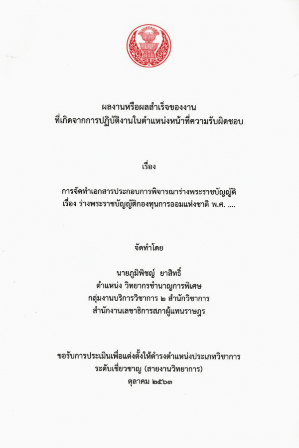 การจัดทำเอกสารประกอบการพิจารณาร่างพระราชบัญญัติ เรื่อง ร่างพระราชบัญญัติกองทุนการออมแห่งชาติ พ.ศ. .... / ภูมิพิชญ์ ยาสิทธิ์