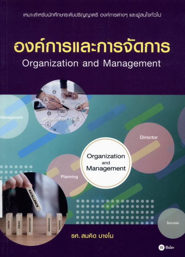 บทที่ 1 ความรู้ทั่วไปเกี่ยวกับองค์การ -- บทที่ 2 ทฤษฏีองค์การ -- บทที่ 3 การเปลี่ยนแปลงองค์การ -- บทที่ 4 ความรู้เบื้องต้นเกี่ยวกับการจัดการ -- บทที่ 5 การวางแผน -- บทที่ 6 การจัดองค์การ -- บทที่ 7 การจัดการงานบุคคล -- บทที่ 8 การอำนวยการ -- บทที่ 9 การควบคุมงาน -- บทที่ 10 ภาวะผู้นำกับการจัดการ -- บทที่ 11 การทำงานเป็นทีม -- บทที่ 12 การบริหารความขัดแย้ง -- บทที่ 13 แนวความคิดการบริหารสมัยใหม่ -- บทที่ 14 การจัดการระหว่างประเทศ.