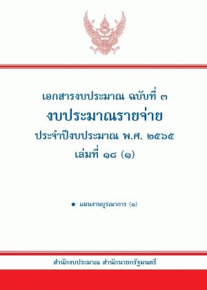 เอกสารงบประมาณ ฉบับที่ 3 งบประมาณรายจ่าย ประจำปีงบประมาณ พ.ศ. 2565 เล่มที่ 18 (1) แผนงานบูรณาการ (1) / สำนักงบประมาณ.