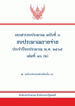 เอกสารงบประมาณ ฉบับที่ 3 งบประมาณรายจ่าย ประจำปีงบประมาณ พ.ศ. 2565 เล่มที่ 16 (2) องค์กรปกครองส่วนท้องถิ่น (2) / สำนักงบประมาณ.