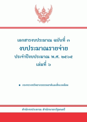 เอกสารงบประมาณ ฉบับที่ 3 ประจำปีงบประมาณรายจ่าย ประจำปีงบประมาณ พ.ศ. 2565 เล่มที่ 6 กระทรวงทรัพยากรธรรมชาติและสิ่งแวดล้อม / สำนักงบประมาณ.