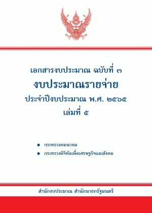 เอกสารงบประมาณ ฉบับที่ 3 งบประมาณรายจ่าย ประจำปีงบประมาณ พ.ศ. 2565 เล่มที่ 5 กระทรวงคมนาคม กระทรวงดิจิทัลเพื่อเศรษฐกิจและสังคม / สำนักงบประมาณ.