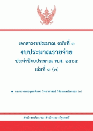 เอกสารงบประมาณ ฉบับที่ 3 งบประมาณรายจ่าย ประจำปีงบประมาณ พ.ศ. 2565 เล่มที่ 3 (3) กระทรวงการอุดมศึกษา วิทยาศาสตร์ วิจัยและนวัตกรรม (3) / สำนักงบประมาณ.