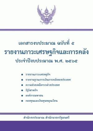 เอกสารงบประมาณ ฉบับที่ 5 รายงานภาวะเศรษฐกิจและการคลัง ประจำปีงบประมาณ พ.ศ. 2565 รายงานภาวะเศรษฐกิจ รายงานฐานะการเงินการคลังของประเทศ ความช่วยเหลือจากต่างประเทศ รัฐวิสาหกิจ องค์การมหาชน กองทุนและเงินทุนหมุนเวียน / สำนักงบประมาณ.