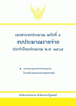 เอกสารงบประมาณ ฉบับที่ 4 งบประมาณรายจ่าย ประจำปีงบประมาณ พ.ศ. 2565 งบประมาณรายจ่ายจำแนกตามโครงสร้างแผนงานตามยุทธศาสตร์ / สำนักงบประมาณ.