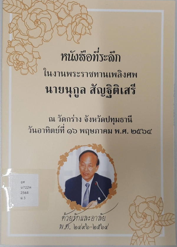 National Assembly Library of Thailand | Cremation collection | Cremation corner | อศ น722ห 2564 (เรียกดูชั้นหนังสือ(เปิดด้านล่าง)) | ฉ.1 | พร้อมให้บริการ | 3961212196 | |
