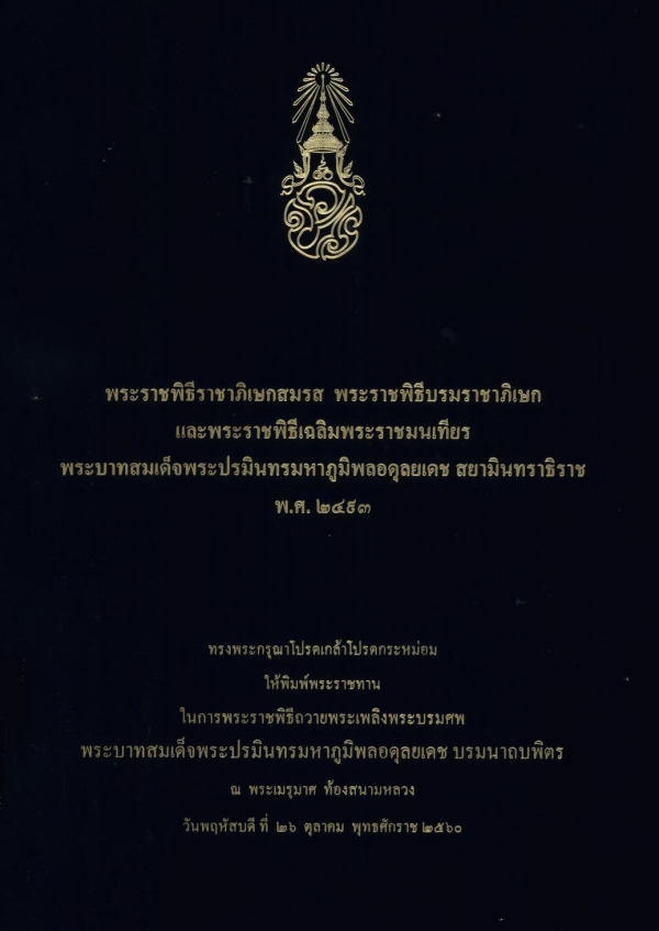 ทรงพระกรุณาโปรดเกล้าโปรดกระหม่อมให้พิมพ์พระราชทานในการพระราชพิธีถวายพระเพลิงพระบรมศพพระบาทสมเด็จพระปรมินทรมหาภูมิพลอดุลยเดช บรมนาถบพิตร ณ พระเมรุมาศ ท้องสนามหลวง วันพฤหัสบดี ที่ 26 ตุลาคม พุทธศักราช 2560.