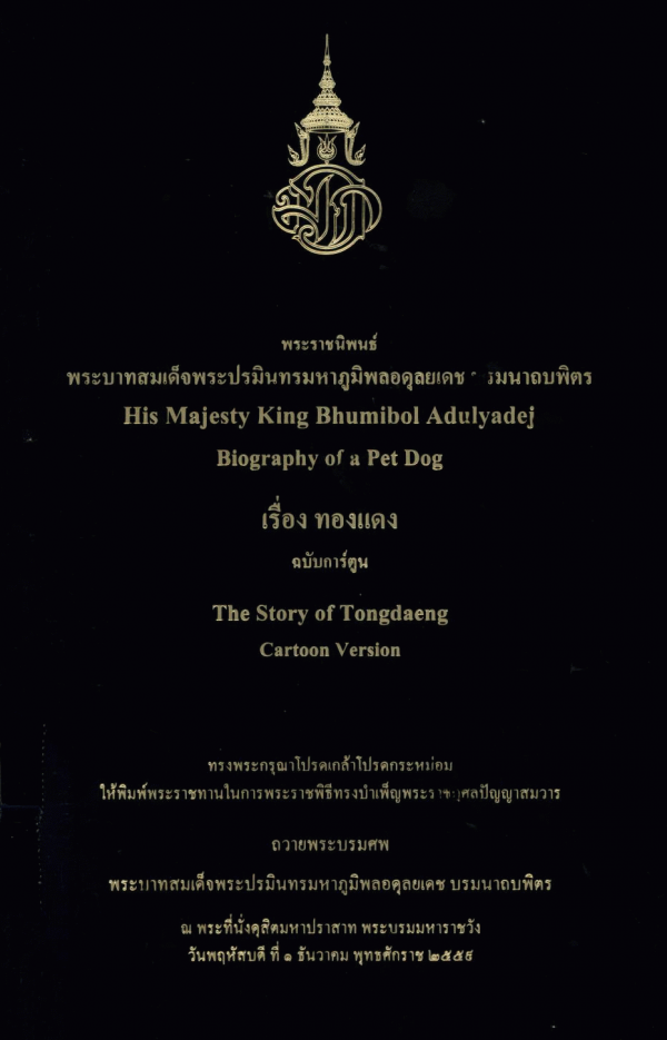 พระราชนิพนธ์พระบาทสมเด็จพระปรมินทรมหาภูมิพลอดุลยเดช บรมนาถบพิตร เรื่อง ทองแดง ฉบับการ์ตูน = His Majesty King Bhumibol Adulyadej Biography of a Pet dog The Story of Tongdaeng Cartoon Version / สำนักราชเลขาธิการ.
