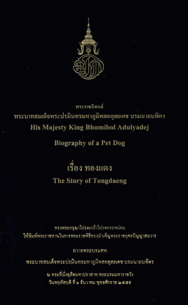 พระราชนิพนธ์พระบาทสมเด็จพระปรมินทรมหาภูมิพลอดุลยเดช บรมนาถบพิตร เรื่อง ทองแดง = His Majesty King Bhumibol Adulyadej Biography of a Pet Dog The Story of Tongdaeng / สำนักราชเลขาธิการ.