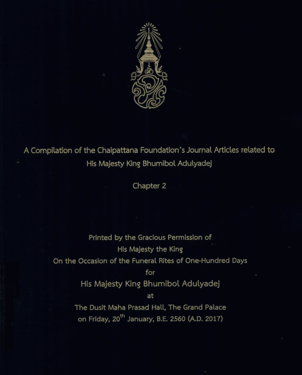 A Compilation of the Chaipattana Foundation's Journal Articles related to His Majesty King Bhumibol Adulyadej Chapter 2: Printed by the Gracious Permission of His Majesty the King On the Occasion of the Funeral Rites of One-Hundred Days for His Majesty King Bhumibol Adulyadej at The Dusit Maha Prasad Hall, The Grand Palace on Friday, 20th January, B.E. 2560 (A.D. 2017) / The Chaipattana Foundation.