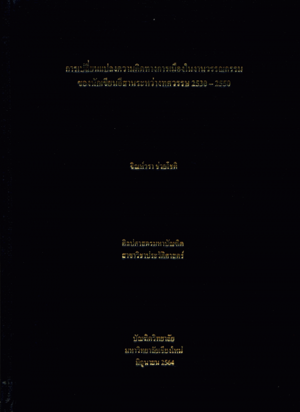 การเปลี่ยนแปลงความคิดทางการเมืองในงานวรรณกรรมของนักเขียนอีสานระหว่างทศวรรษ 2530-2550 / จิณห์วรา ช่วยโชติ.
