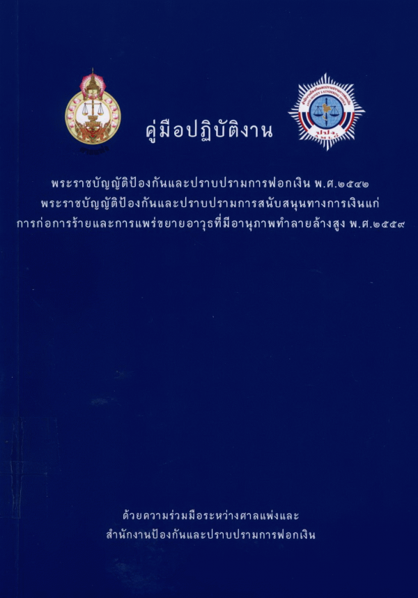 คู่มือปฏิบัติงานพระราชบัญญัติป้องกันและปราบปรามการฟอกเงิน พ.ศ.2542 พระราชบัญญัติป้องกันและปราบปรามการสนับสนุนทางการเงินแก่การก่อการร้ายและการแพร่ขยายอาวุธที่มีอานุภาพทำลายล้างสูง พ.ศ.2559 / ศาลแพ่งและสำนักงานป้องกันและปราบปรามการฟอกเงิน.