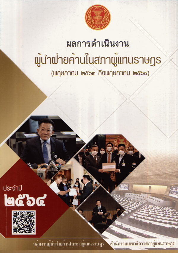 ผลการดำเนินงานผู้นำฝ่ายค้านในสภาผู้แทนราษฎร (พฤษภาคม 2563 ถึงพฤษภาคม 2564) ประจำปี 2564 / กลุ่มงานผู้นำฝ่ายค้านในสภาผู้แทนราษฎร สำนักงานเลขาธิการสภาผู้แทนราษฎร.
