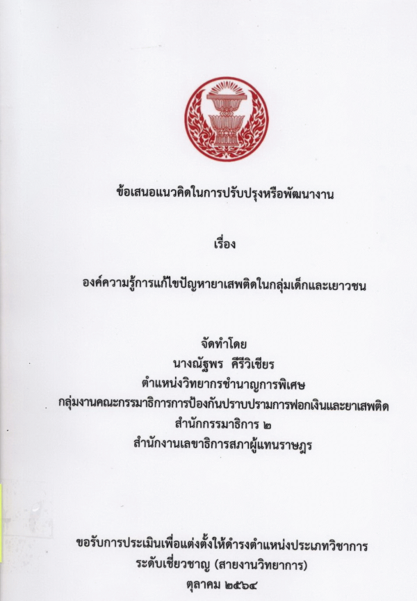 องค์ความรู้การแก้ไขปัญหายาเสพติดในกลุ่มเด็กและเยาวชน / ณัฐพร คีรีวิเชียร.