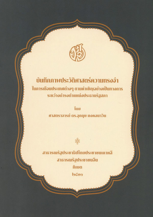 บันทึกภาพประวัติศาสตร์ความทรงจำในการเยือนประเทศต่าง ๆ ตามคำเชิญอย่างเป็นทางการระหว่างดำรงตำแหน่งประธานรัฐสภา (สาธารณรัฐประชาธิปไตยประชาชนเกาหลี สาธารณรัฐประชาชนจีน ทิเบต 2531) / อุกฤษ มงคลนาวิน.
