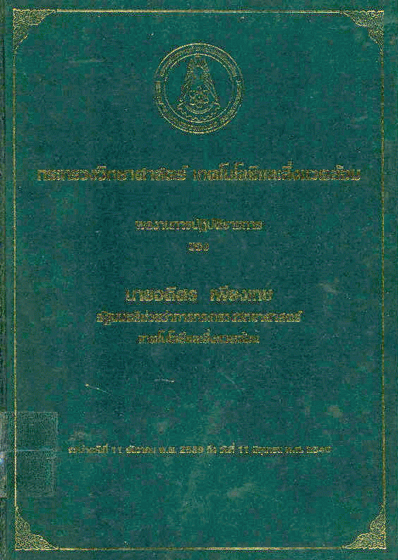 TextLanguage: Thai Publisher: 2540 : กระทรวงวิทยาศาสตร์เทคโนโลยีและสิ่งแวดล้อม, ม.ป.ป.Description: 1 เล่ม : ภาพประกอบ, ตาราง ; 29 ซมSubject(s): LOC classification: - DS578.32 อ128ผ 2540