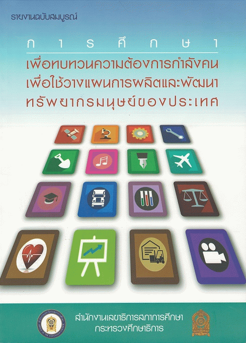- รายงานฉบับสมบูรณ์ การศึกษาเพื่อทบทวนความต้องการกำลังคนเพื่อใช้วางแผนการผลิต และพัฒนาทรัพยากรมนุษย์ของประเทศ [Spine title]